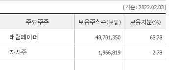 태림페이퍼가 지분의 68%를 가지고있다.