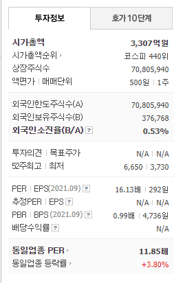 시가총액 3,307억